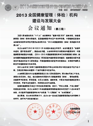 2013全國健康管理(體檢)機構建設與發展大會將啟動“熱斷層(TTM)技術多中心研究項目”會議通知